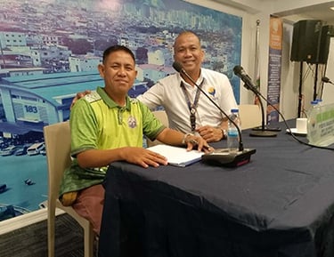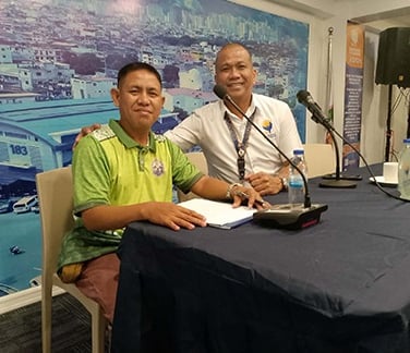 SANIB-PUWERSA: Brgy. Chairman Alvin Zuniga ng Brgy. 183, Zone 20, Pasay City at Barangay Tres Reyes, Bato, Camarines Sur chairman Paul Vincent O. Espinola. (mga kuha ni Edwin Belosillo)