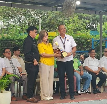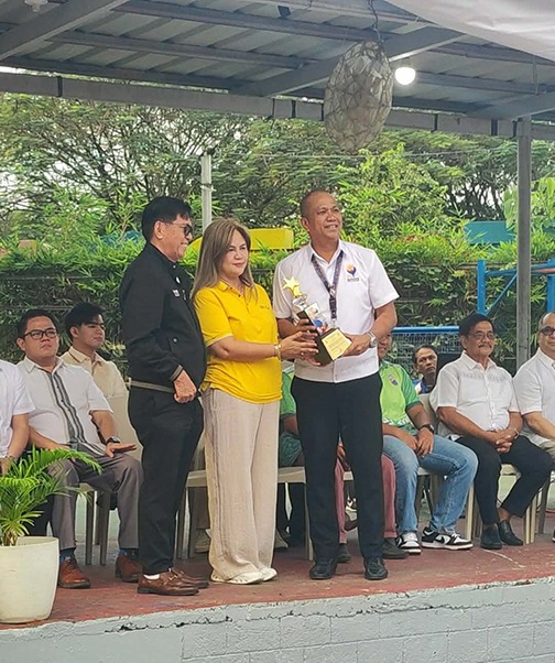 Pinagkalooban ng "Gawad Huwarang Lingkod Barangay" ni Barangay Balita Ngayon (BBN) editor -in-chief Johnny Balani si Brgy. Chairman Alvin Zuniga ng Brgy. 183, Zone 20, Pasay City kasama ang kanyang maybahay Eleanor Zuniga (gitna) kahapon kasabay ng Barangay Sisterhood Program at Benchmarking of Best Practices of Bagong Villamor Brgy 183, Zone 20 at ng Barangay Tres Reyes, Bato, Camarines Sur sa pangunguna ni Punong Barangay Paul Vincent O. Espinola. (kuha ni Edwin Belosillo)