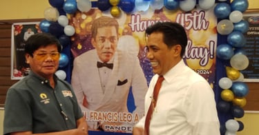 Nanumpa sa tungkulin bilang bagong miyembro ng Partido Federal ng Pilipinas kay PFP Chairman/ Spokesman Dr.Francis Leo Marcos PhD sa seremonyang idinaos mismo sa ika-45 na kaarawan (Set.29) ni FLM sa Las Piñas City.(Kuha ni ENJEL MANATO)
