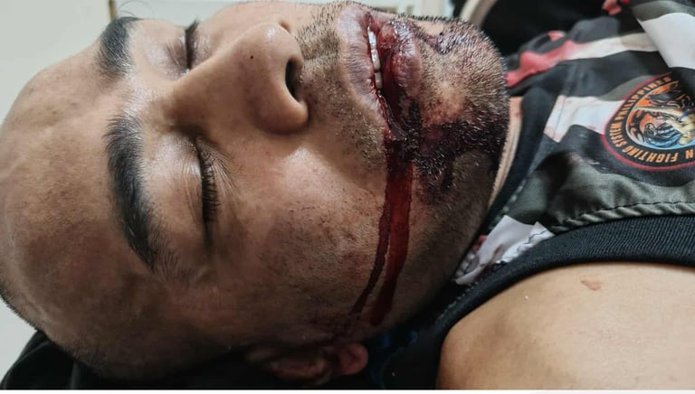 Pero nang papunta na sa barangay si Catalan kasama ang 2 witness niyang anak ay nagdatingan ang mga tinawag ng courier at mula sa kanyang likuran ay inumbagan siya ng deadly na bagay ay hinataw ng helmet dahilan upang mabasag ang panga , sumuka ng dugo at nawalan siya ng ulirat saka walang habas na suntok at sipa ang binira ng mga buhong sa biktima sabay pulasan ang mga siga.
