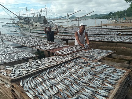 DISKARTE LANG: Matiyagang pinagtulungan ng dalawa nating kababayan ang pagbibilad ng isadang tamban sa Brgy. Tanza, Estancia sa Iloilo. (EB)
