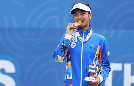 She then broke the Thai’s serve to move one game away from the gold, 5-2.