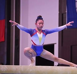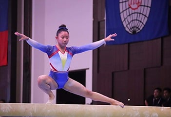 Elisabeth Antone shows fine form on the balance beam of the 3rd FIG Artistic Gymnastics Junior World Championships women's all-around qualifiers last Friday night at the Manila Marriott Grand Ballroom inside the Newport World Resorts in Pasay City.