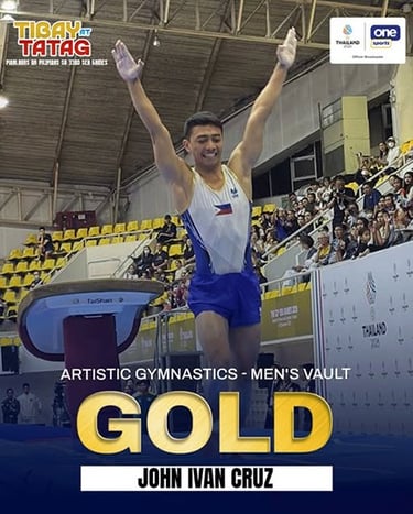 PATHUM THANI --- Filipino gymnast John Ivan Cruz bagged the vault apparatus gold medal at the 33rd Southeast Asian Games men's artistic gymnastics Friday at the Thammasat University Rangsit Campus Gymnasium 5 here.