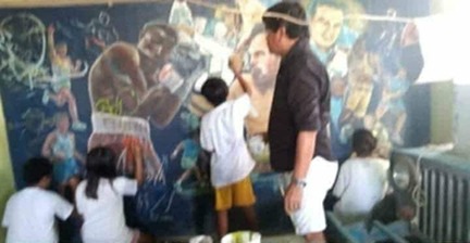 Peoples Champ Manny Pacquiao mural painting by Danny Sìmon and kid artists.