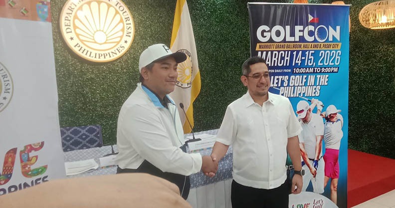 Largado na ang paghataw ng ika-2 edisyon ng GOLFCON 2026 sa Mariott Grand Ballroom Hotel sa Marso 14-15, sa Pasay City kung saan all out ang nagmamaniobrang sina Lyle Fernando Uy (kaliwa), Director for Golf Tourism and Special Projects at Jesse Guerero, chairman ng Philippine Golf Convention 2026, sa press briefing kahapon sa head office ng Department of Tourism sa Gil Puyat Ave., Makati. (Enjel Manato)