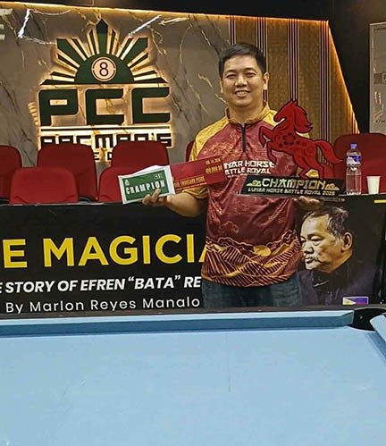 Nasungkit ni Patrick Rivera ang titulo sa Lunar Horse Battle Royal 10-Ball Manalo Cup matapos talunin si Arjay De Jesus, 9-6, sa isang epikong laban sa Finals. Ginanap ang paligsahan sa Pacman's Cue Club na matatagpuan sa Lower Ground Floor, Worldwide Corporate Center, Shaw Boulevard sa Mandaluyong City nitong weekend.