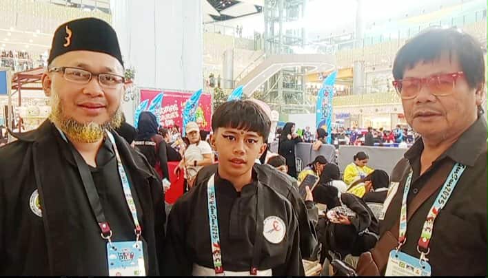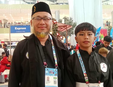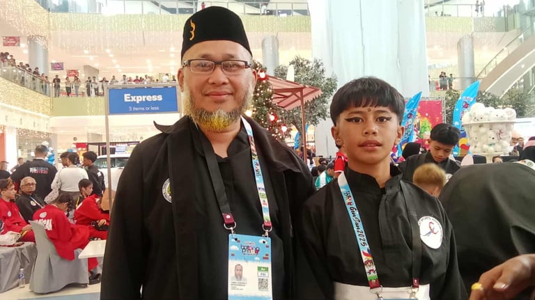 Pencak Silat headcoach Jam Hussein Marohombsar and gold medalist Junaim Rachman.