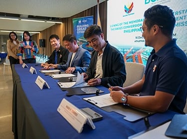 In photo (L-R): PSC Commissioner Edward Hayco, PSC Chairman Patrick Gregorio, BCDA President Joshua Bingcang and BCDA OIC Senior Vice President for Conversion and Development Mark Torres.