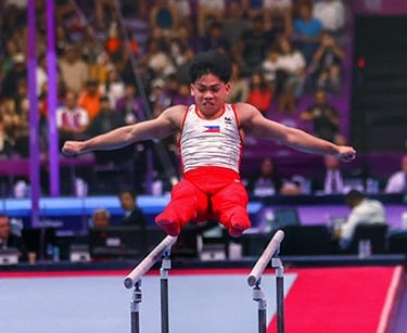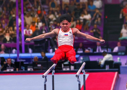 But the younger brother of Paris Olympic double gold medalist Carlos Edriel Yulo was unable to retain his lofty spot as he dipped with scores of 13.000 and 12.066, respectively in the pommell horse and rings, and was eventually overtaken by the rest of the field who were still playing as he closed out his own campaign.